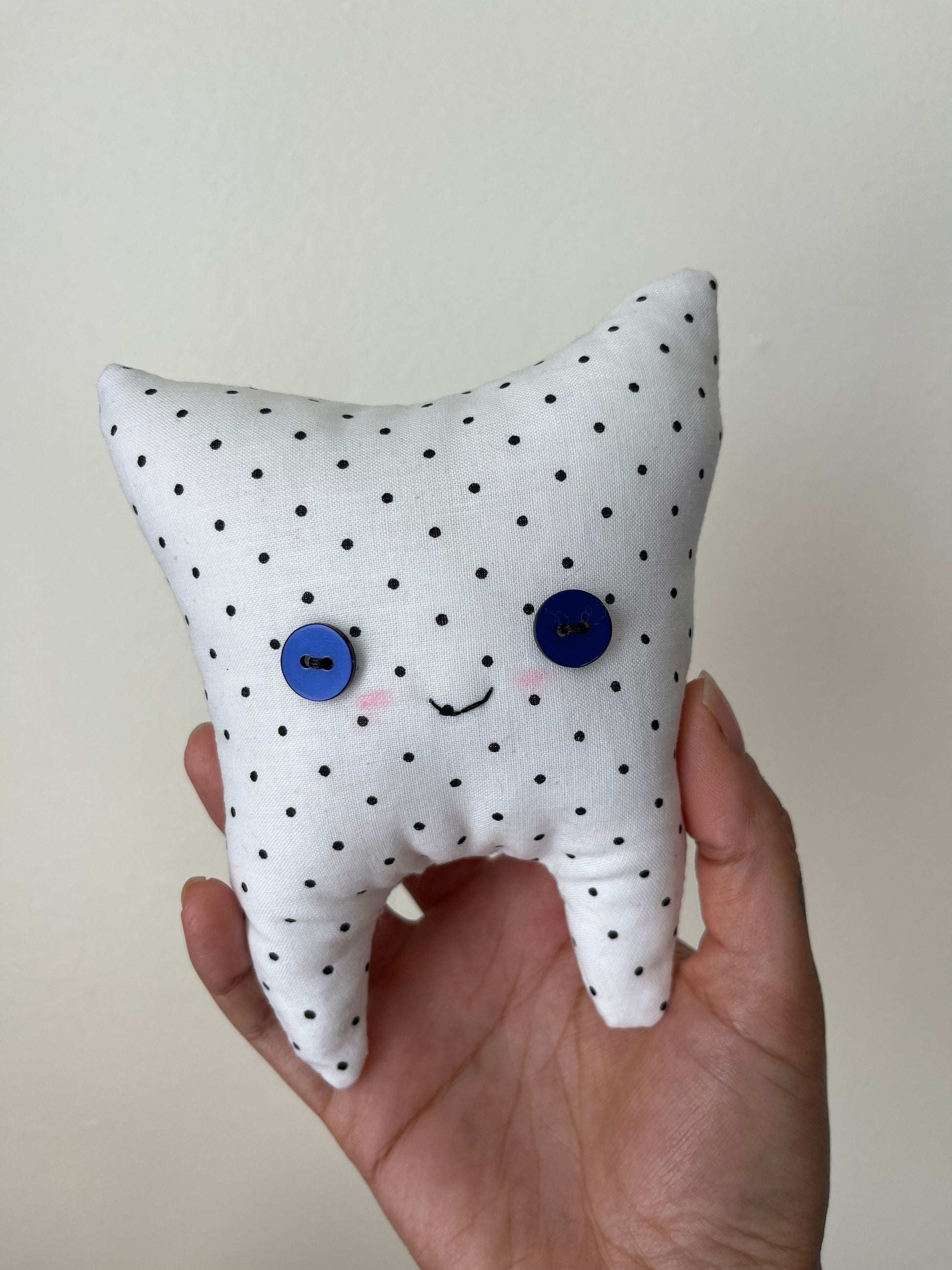 Each tooth pillow is unique - featuring vintage and thrifted buttons and fabric.